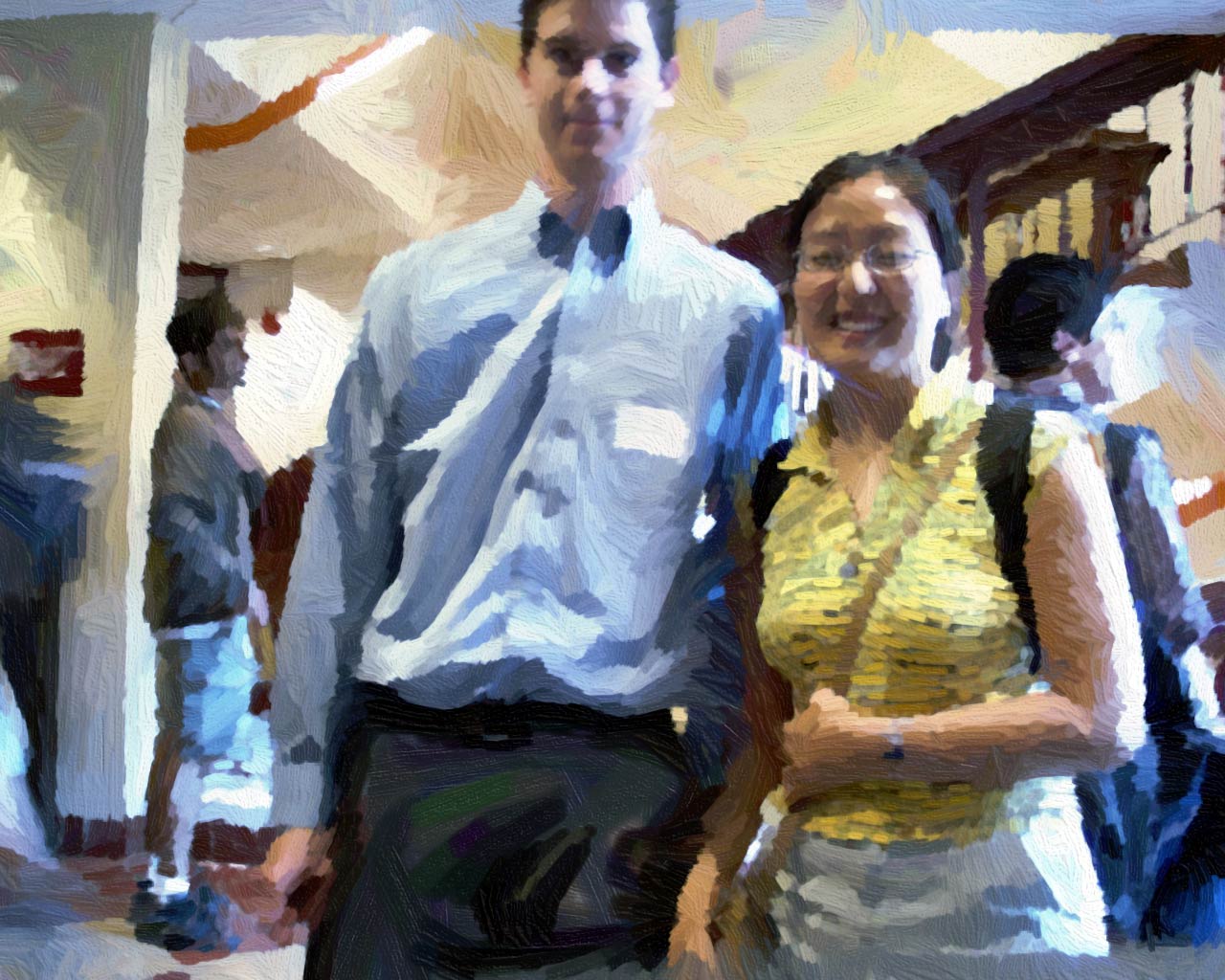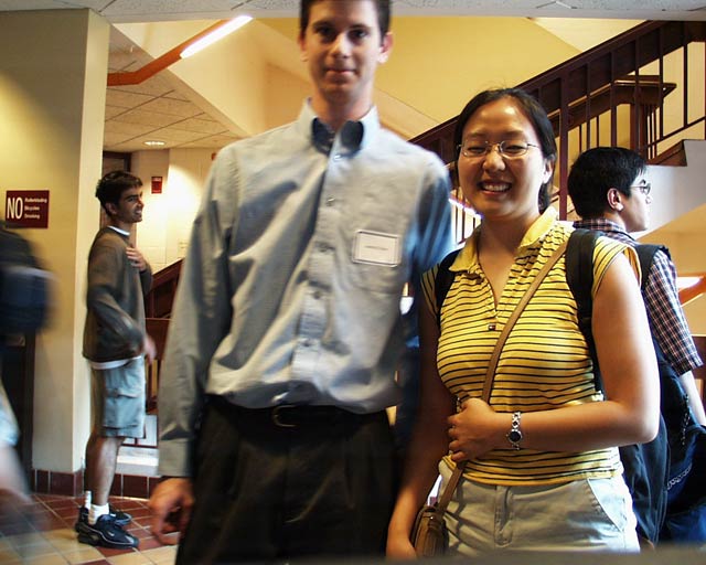 Blurry presenter James Hays and undergraduate Mia Fiedler